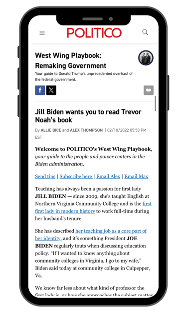 At POLITICO, I ideated ways to build and maintain the audience and overall engagement of POLITICO’s daily newsletter about the White House, West Wing Playbook, helping establish an audience of more than 110,000 subscribers in 2 years.